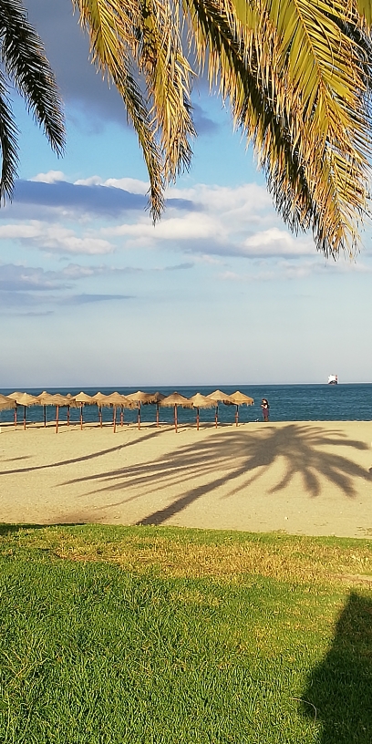 I resti del passato arabo di Malaga spiccano tra i bastioni del castello, retto da uno dei sultani regnati a Malaga ha poi nei secoli avuto funzione di torre di segnalazione e caserma militare. Il panorama dall'alto è spettacolare e regala l'immagine di tutta la costa del Sol. Fa freddo, il sole da stamattina non fa altro che nascondersi tra le nubi , c'è un vento che ti porta via, metto e levo il giubbino. Sotto di noi verso il mare un giardino bellissimo ed il Paseo de Parque...decidiamo di andare a fare una passeggiata La discesa è chiaramente molto meno faticosa ma,come al solito , ho messo i famosi sandaletti inutili che non fanno presa sul terreno .Sono le diciannove passate ed il sole è ancora alto passeggiamo lungo il paseo sotto una fila di palme tropicali tra ristoranti già pieni di turisti del nord europa, mangiano a orari impossibili, bar de tapas, negozietti di souvenir e catene di abbigliamento, il sole scalda Arriviamo al faro ed alla spiaggia.... è infinita ,ci stendiamo sulla sabbia , in lontananza il quartiere della Malaquita con i suoi palazzi residenziale ed ristoranti più esclusivi che sinceramente non ci interessano.